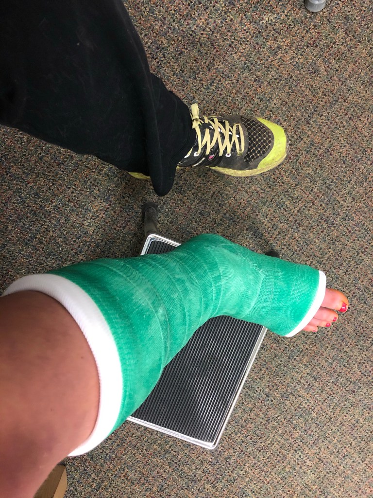 Day #4: all the emotions … lots of tears, stress, anxiety and I feel like I was living in a nightmare that I couldn’t wake up from. Multiple doctors appointments, lots of different surgery remedies to fix my ankle/leg. It was very confusing and stressful trying to keep everything straight and to pick a doctor and go with their surgery. Everyone had a different opinion. I went from a hard splint to a boot back to a splint and finally to a hard cast. and let me tell you, a splint was the easiest piece of hardware to manage.