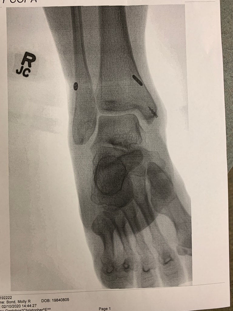 Orthopedic appointment. Two days later. Doctor comes in and immediately starts telling me what surgery I need to have and that they can get me in the following afternoon. I sat there stunned. I didn’t even know what was wrong with my foot/ leg not to mention being able to grasp the idea that I had to have surgery. Immediate tears. Luckily my boyfriend slowed the doctor down and said that we were going to get a second opinion.